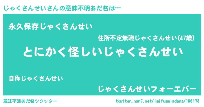 | 胡散臭い通販商品みたいなあだ名 | 『伝統あるサプリメント…その名も「じゃくさんせい」』 |