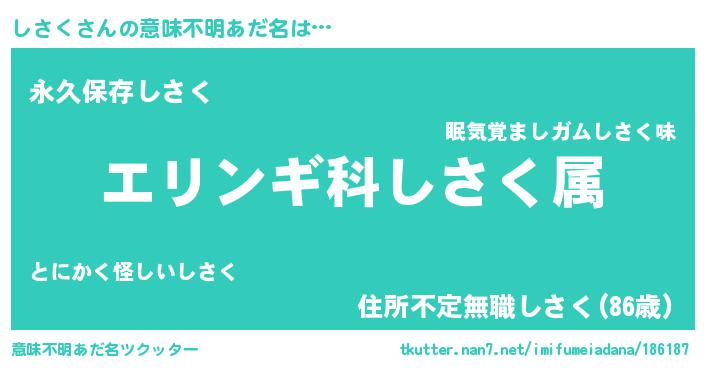 | 欧米人風あだ名 | 『アンジェラ・しさく』『ダニエルしさく』 |