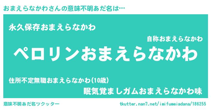 | ヒーロー風カッコイイあだ名 | 『スーパーオマエラナカワ』 |