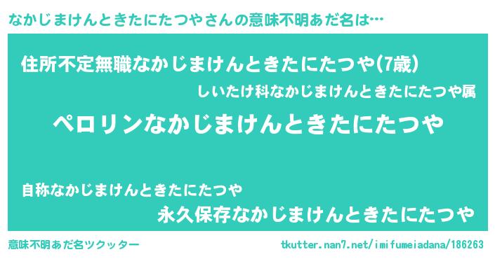| 胡散臭い通販商品みたいなあだ名 | 『億万長者になれる霊験あらたかなお札…その名も「なかじまけんときたにたつや」』 |