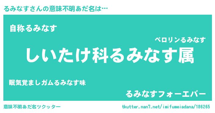 | 男性向けラノベタイトル風あだ名 | 『ルミナススレイヤー』『るみなすの憂鬱』 |