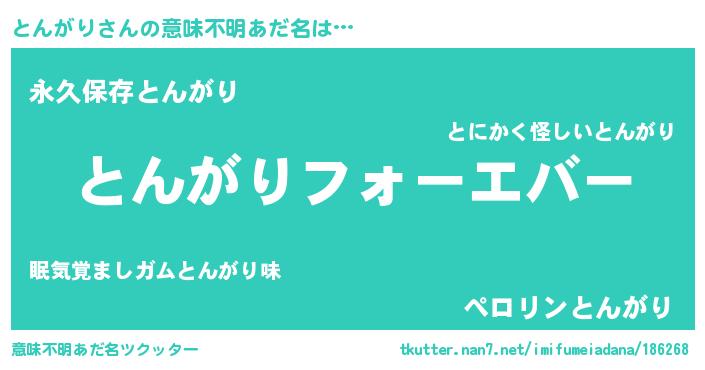 | ファンタジー風あだ名 | 『エターナルトンガリー』『トンフェル』 |