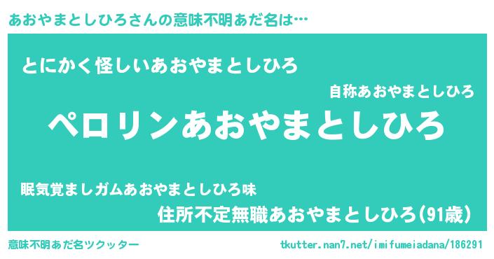 | 胡散臭い通販商品みたいなあだ名 | 『億万長者になれる霊験あらたかなお札…その名も「あおやまとしひろ」』 |