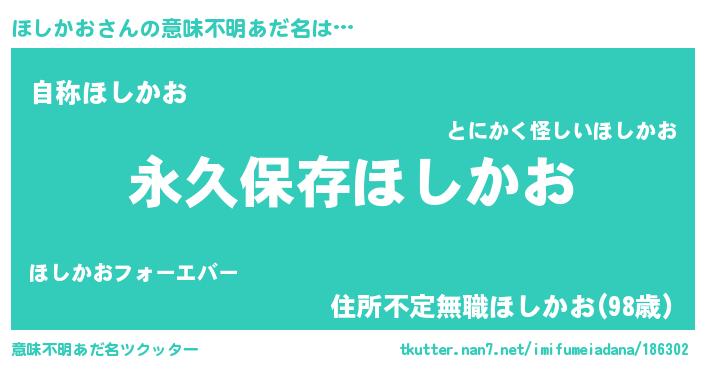 | 男性向けラノベタイトル風あだ名 | 『ほしかおという概念が存在しない退屈な世界 』 |