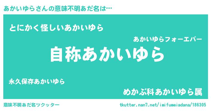 | 欧米人風あだ名 | 『ケンブリッジあかいゆら』 |