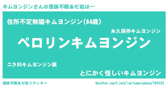 | 男性向けラノベタイトル風あだ名 | 『キムヨンジンアートオンライン』 |