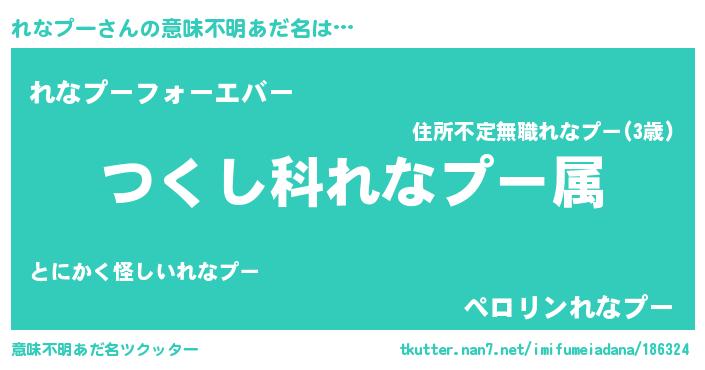 | 男性向けラノベタイトル風あだ名 | 『れなプー~年齢イコール彼女いない歴の魔法使い~』 |