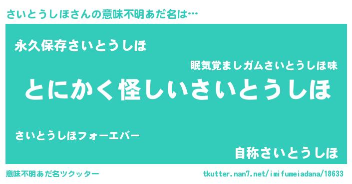 | ヘコむあだ名 | 『さいっちょ』『さいとうしほ(小並感)』 |