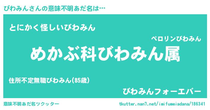 | 男性向けラノベタイトル風あだ名 | 『ビワミンスレイヤー』 |