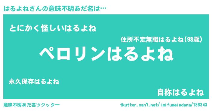 | ポケモン風あだ名 | 『ハルチュウ』『ヒハルヨネ』 |
