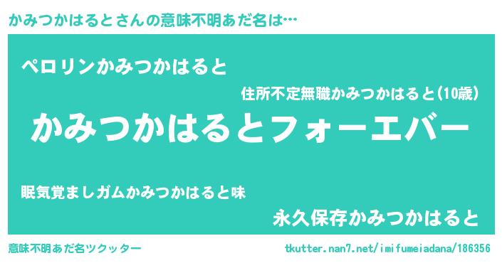 | ファンタジー風あだ名 | 『エターナルカミツカハルトー』 |