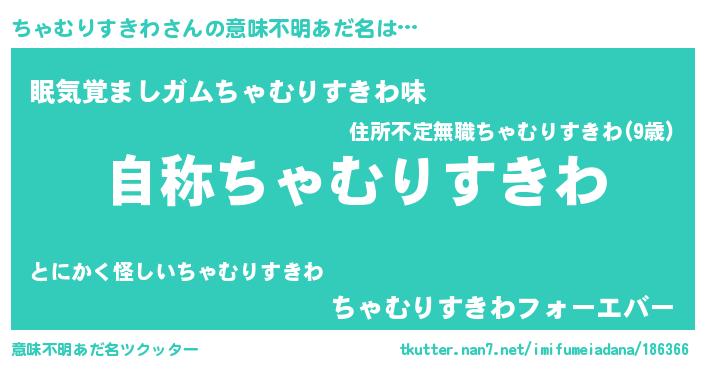 | 肩書あだ名 | 『ちゃむりすきわ総統』 |