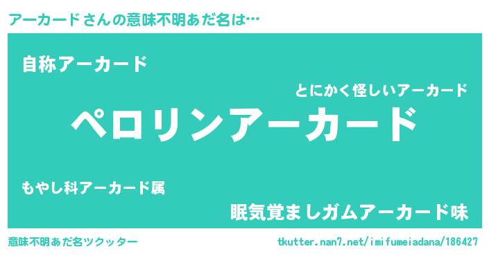 | 胡散臭い通販商品みたいなあだ名 | 『モテモテ間違いなし霊験あらたかなお札…その名も「アーカード」』 |