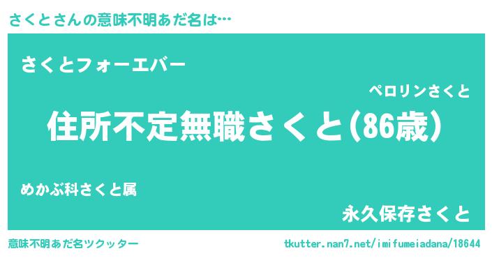 | 男性向けラノベタイトル風あだ名 | 『魔弾の王とさくと』 |