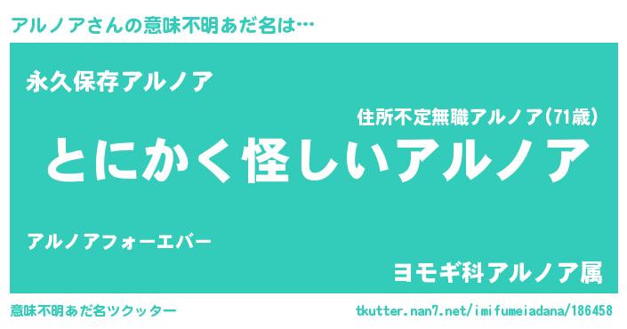 | ヘコむあだ名 | 『アルを』『アルノア(小並感)』 |