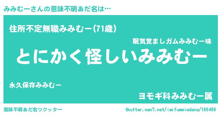 | 自動車の名前っぽいあだ名 | 『ミント』『ランミミギーニ』 |