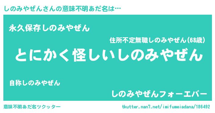 | 男性向けラノベタイトル風あだ名 | 『ダンジョンにしのみやぜんを求めるのは間違っているだろうか』 |