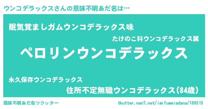 | 胡散臭い通販商品みたいなあだ名 | 『億万長者になれる霊験あらたかなお札…その名も「ウンコデラックス」』 |