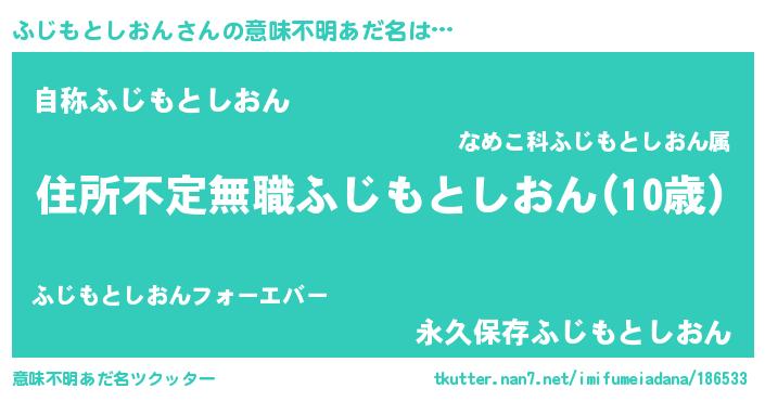 | 欧米人風あだ名 | 『ふじもとしおん・ステッグマイヤー』 |
