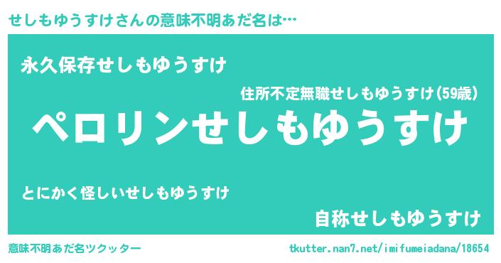 | ヘコむあだ名 | 『せしにゅー』『せしもゆうすけ(笑)』 |