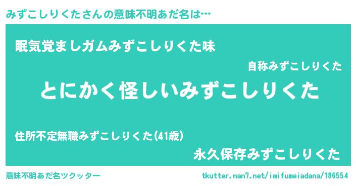 | 欧米人風あだ名 | 『アンジェラ・みずこしりくた』 |