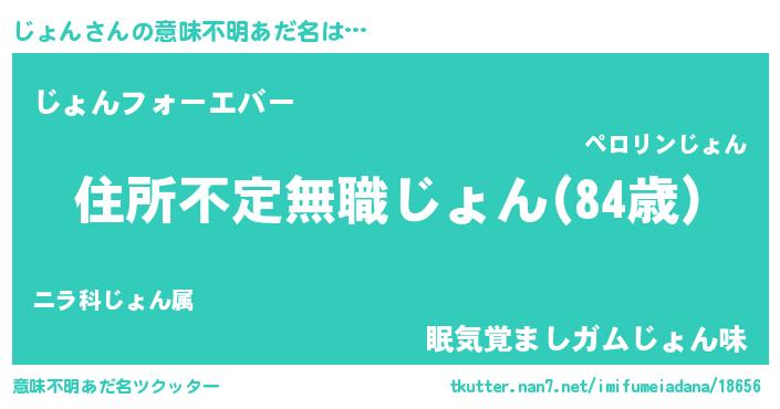 | 男性向けラノベタイトル風あだ名 | 『この素晴らしい世界にじょんを!』 |