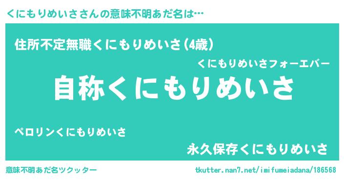 ヘコむあだ名 | 『くにもりめいさ(苦笑)』『酢こんぶ』 |