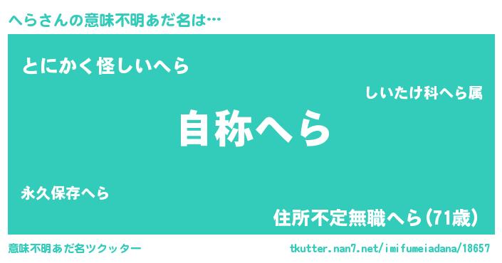 | 男性向けラノベタイトル風あだ名 | 『魔法科高校のへら』『緋弾のヘラ』 |