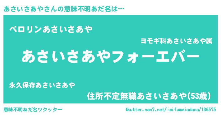 | 女子向けラノベタイトル風あだ名 | 『あさいさあやの雑貨屋さん』 |
