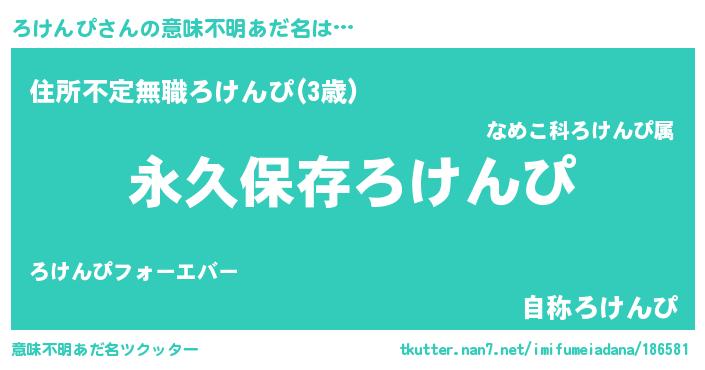 | 男性向けラノベタイトル風あだ名 | 『ろけんぴという概念が存在しない退屈な世界 』 |