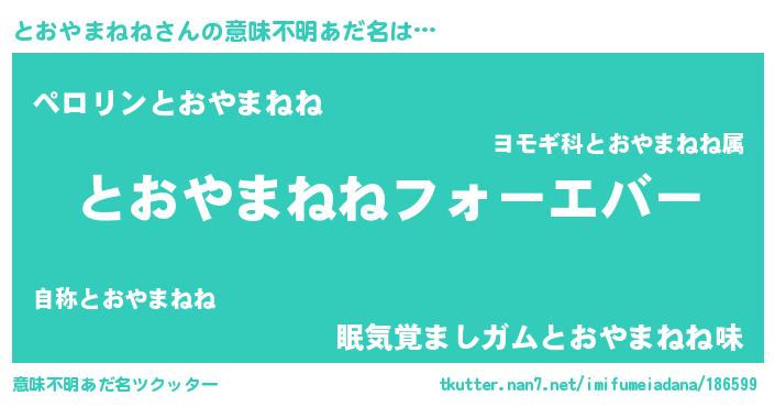 | 欧米人風あだ名 | 『とおやまねねクリステル』 |