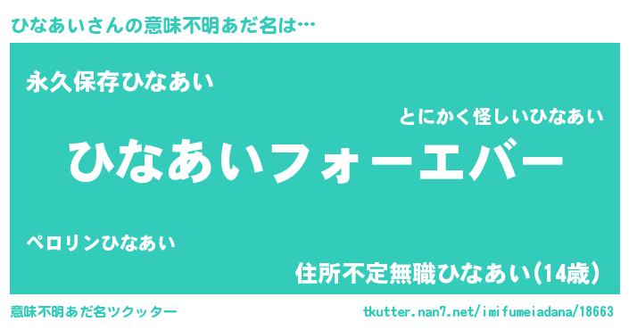 | ヒーロー風カッコイイあだ名 | 『ウルトラひなあいマン』『ネオヒナアイ』 |