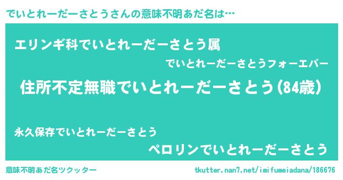 | 欧米人風あだ名 | 『ダレノガレでいとれーだーさとう』 |