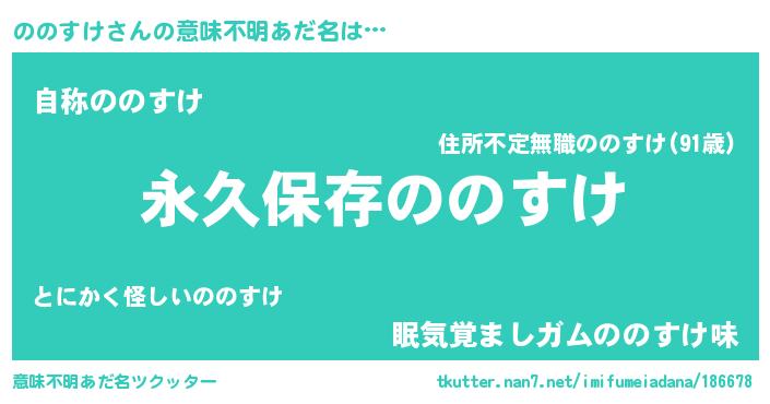 | 男性向けラノベタイトル風あだ名 | 『ののすけという概念が存在しない退屈な世界 』 |
