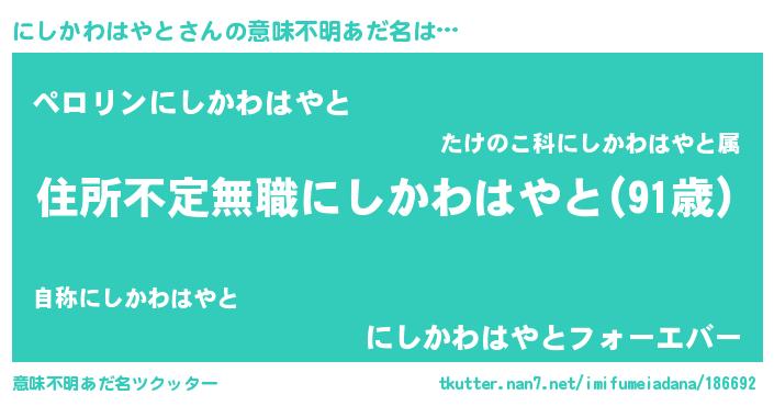 | 恥ずかしいあだ名 | 『プリティーにしかわはやと』『にしちん』 |