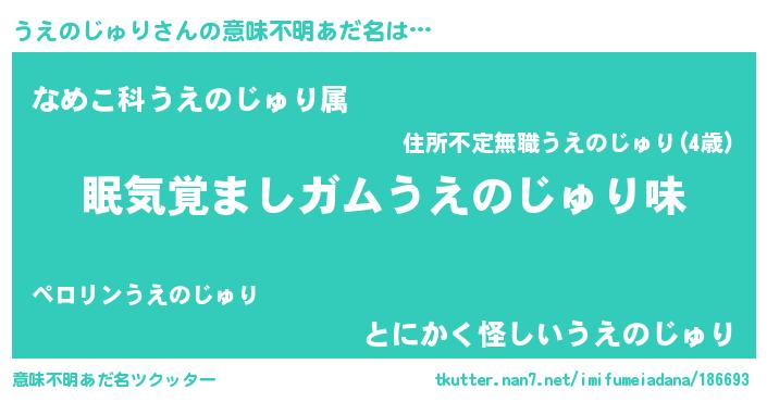 | 男性向けラノベタイトル風あだ名 | 『うちのうえのじゅりが世界を掌握している!』 |