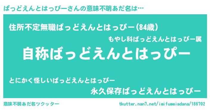 | 肩書あだ名 | 『ばっどえんとはっぴー閣下』 |