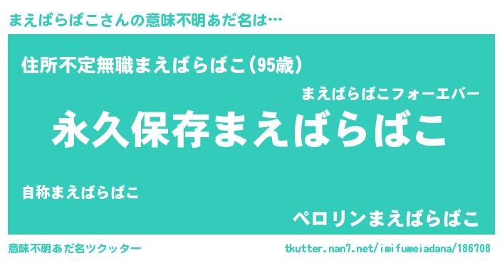 | 伝説のあだ名 | 『古文書に記された暗殺者まえばらばこ』 |