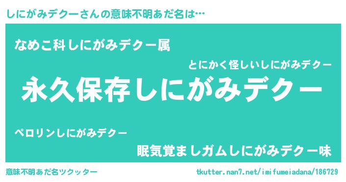 | 料理風あだ名 | 『秋冬にほっこり◇しにがみデクーのなめこおろし煮』 |