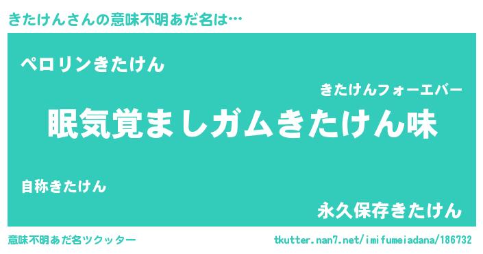 | 男性向けラノベタイトル風あだ名 | 『うちのきたけんが世界を掌握している!』 |
