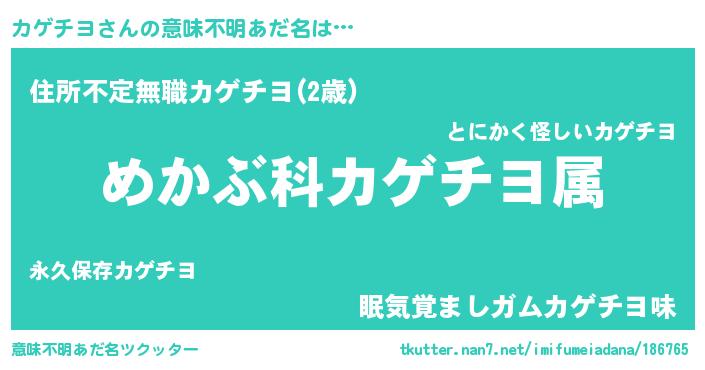 | ヒーロー風カッコイイあだ名 | 『仮面カゲダー』『愛の使者カゲチヨ』 |