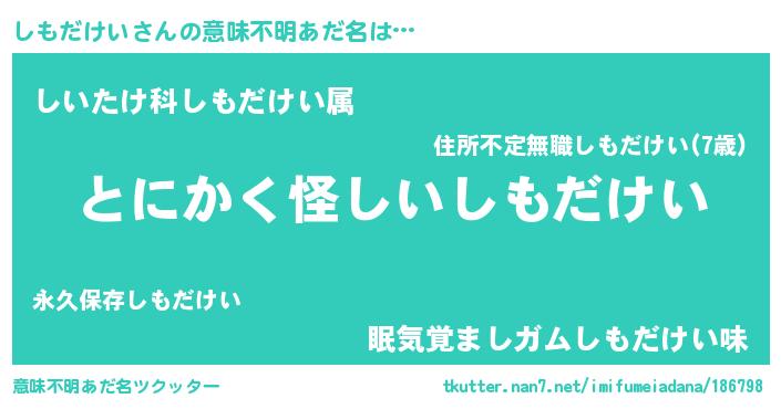 | 胡散臭い通販商品みたいなあだ名 | 『伝統あるサプリメント…その名も「しもだけい」』 |