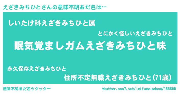 | ヘコむあだ名 | 『えざお』『えざきみちひと(小並感)』 |