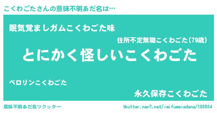 | 男性向けラノベタイトル風あだ名 | 『こくわごたの嫁は女の子じゃないと思った?』 |