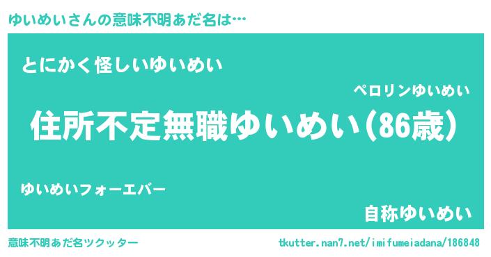 | 欧米人風あだ名 | 『ゆいめい・ステッグマイヤー』 |