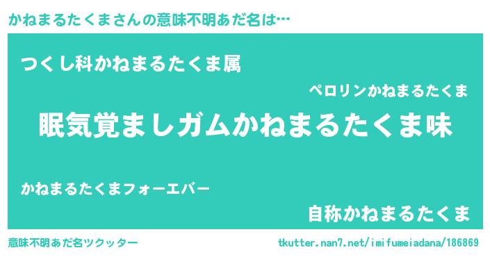 | 胡散臭い通販商品みたいなあだ名 | 『100人中100人が認めたイリジウム磁石…その名も「かねまるたくま」』 |