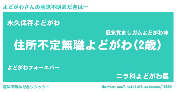 | ヘコむあだ名 | 『よどがわ(小並感)』『なまこ酢』 |
