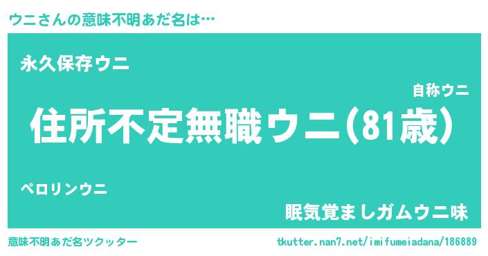 | ヘコむあだ名 | 『ウニ(震え声)』『ウニにー』『豆乳』 |