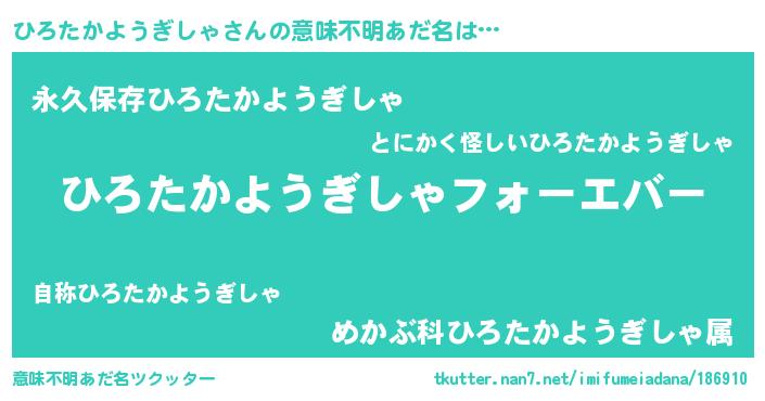 | ヘコむあだ名 | 『酢こんぶ』『ひろたかようぎしゃ(遠い目)』 |