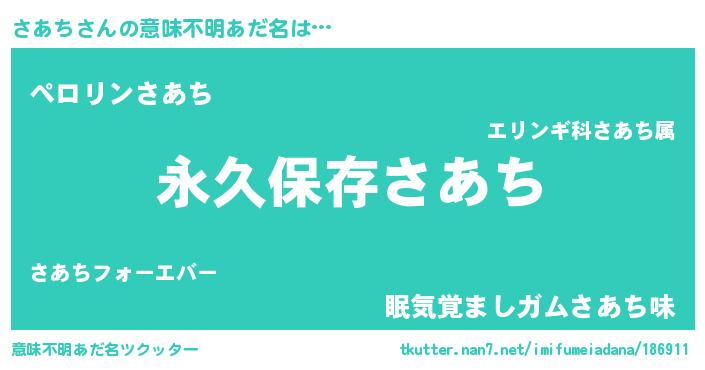 | 男性向けラノベタイトル風あだ名 | 『さあちという概念が存在しない退屈な世界 』 |